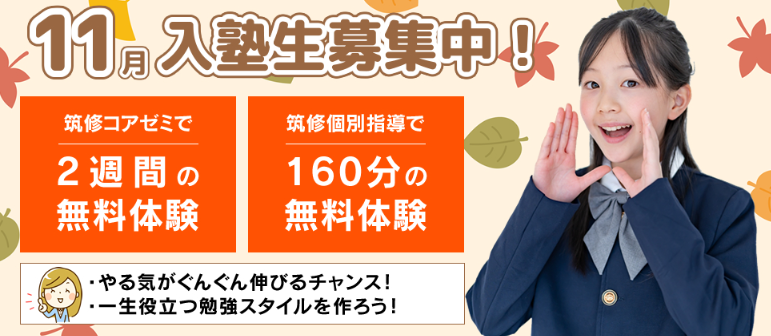 筑紫修学館では11月受講生募集中で無料体験授業受付中です。