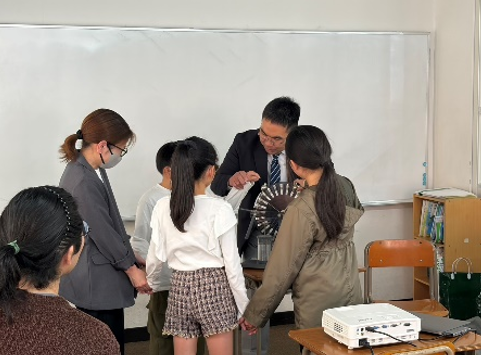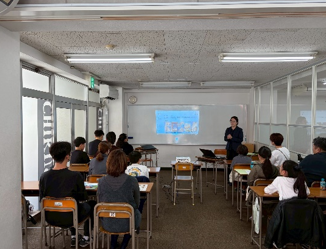 中学校の先生方にお越しいただき、学校の教育理念や特色、生徒たちの活動の様子や生徒募集要項についてくわしく説明していただきました。