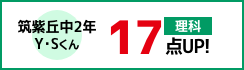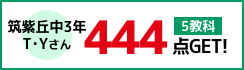 私は中学3年生の夏、受験に向けてのラストスパートとして筑紫修学館に通い始めました。夏期講習では、生まれて初めて長時間勉強することになり、最初はとても大変でした。でも、塾内の友だちとはげまし合うことで、夏期講習の長時間勉強をやり遂げることができました。塾の授業だけではなく、自習室を活用する時間も増やしました。勉強しても思うように点数が上がらないことがあり、悔しいこともありました。塾の先生や友だちからいっぱい励まされたおかげで、学校の定期考査の点数も30点以上アップし、東福岡高校にも合格することができました。努力して良かったと心の底から思いました。これからも勉強を頑張っていきたいです。