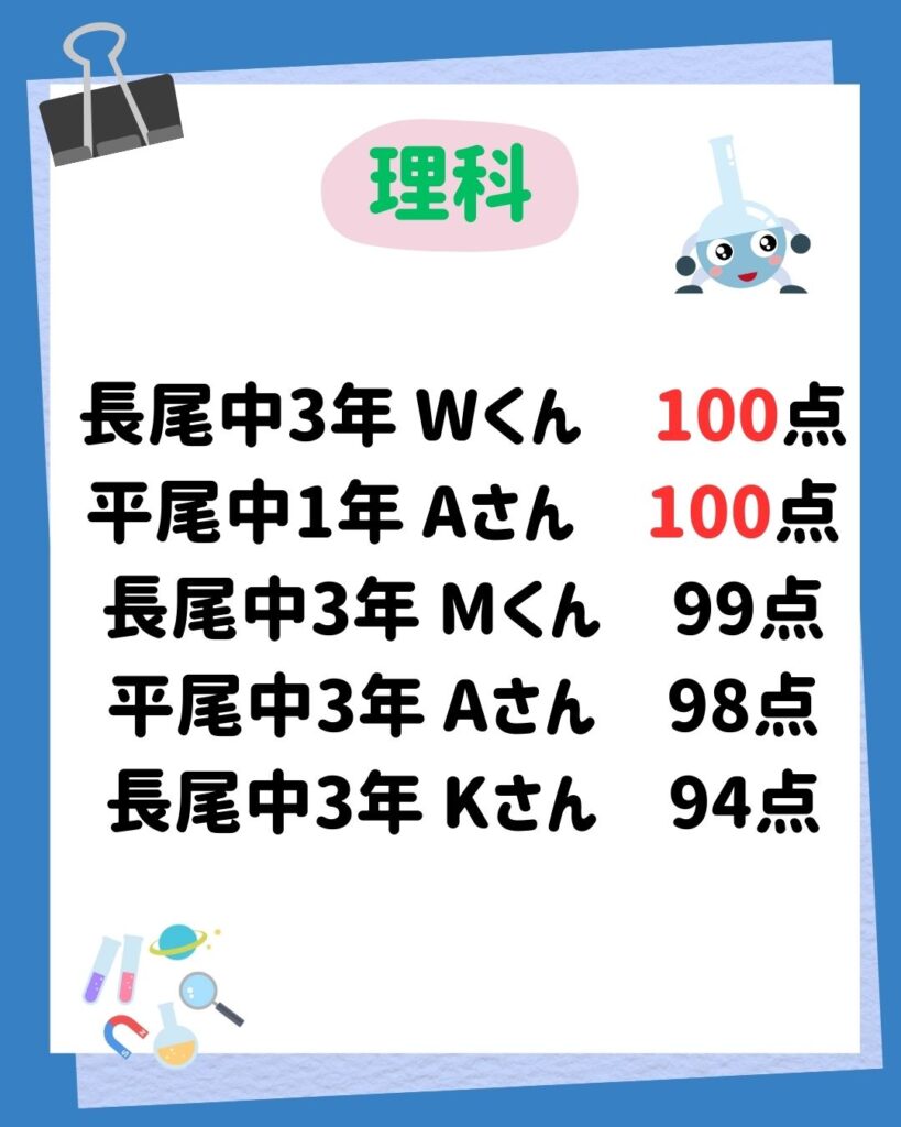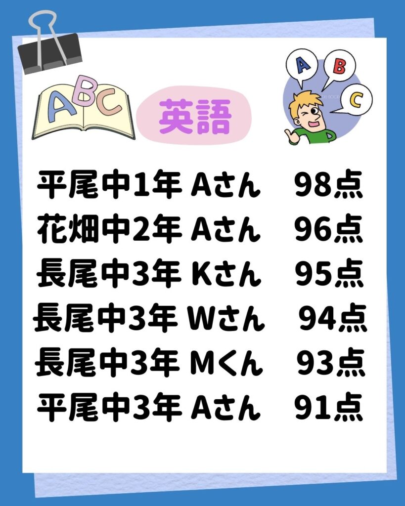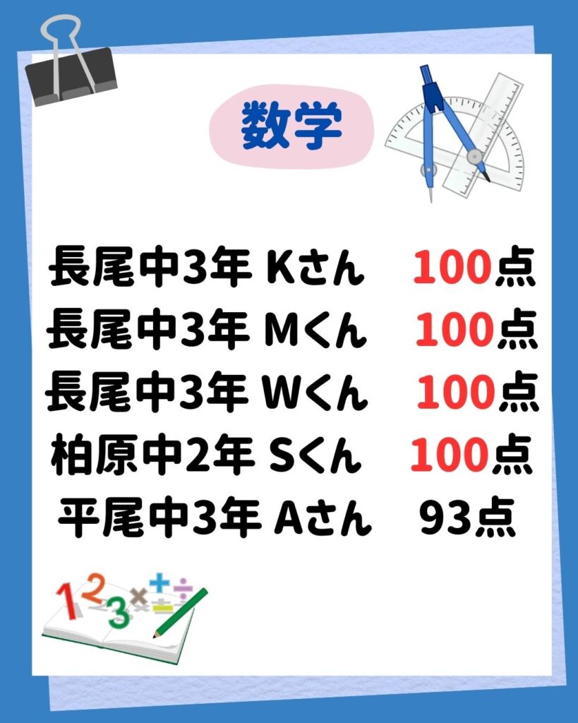 今回は100満点が合計6名いました!!すばらしい(*^-^*)