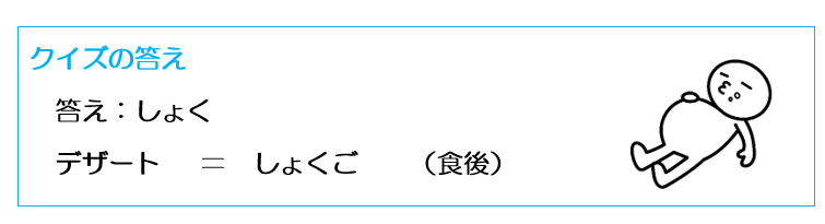 ひっかけ問題というか、だじゃれ問題というか、「食後のデザート」という表現を題材にしたクイズでした。