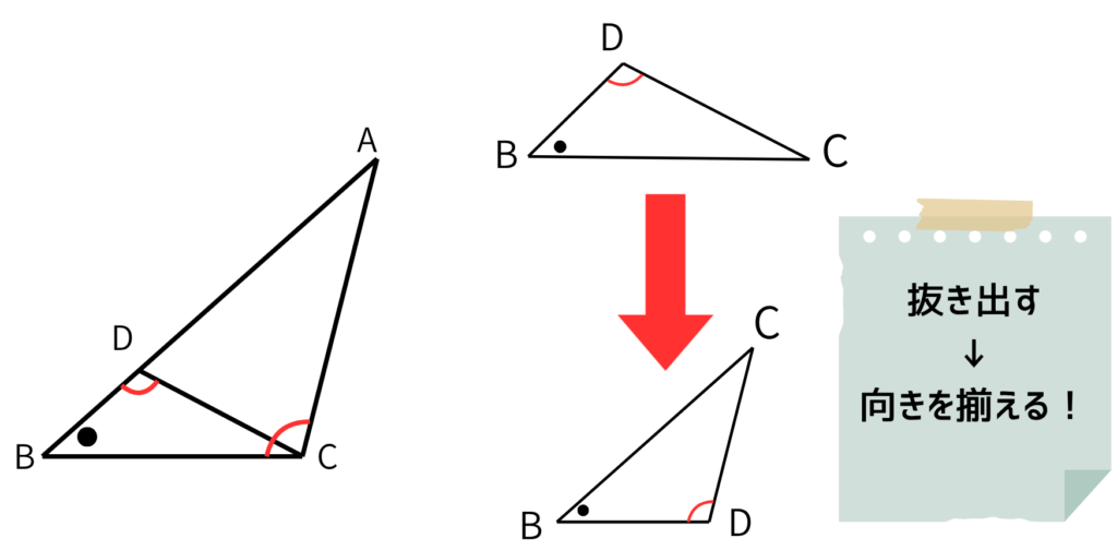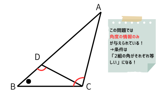 →相似条件は「二組の角がそれぞれ等しい」で決定!