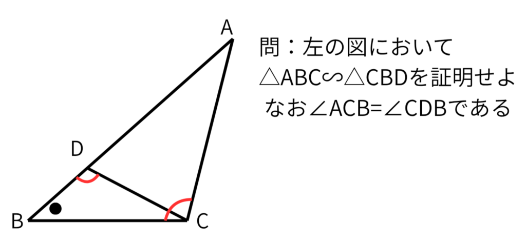 「∠ACB=∠CDB」というヒントのみ与えられています。