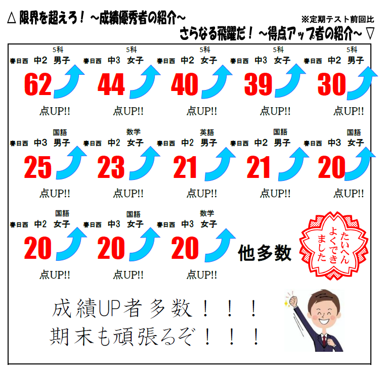 多くの生徒が成績アップを果たしてくれました!