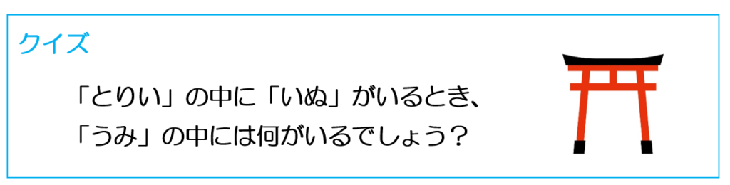 「とりい」も「いぬ」も「うみ」もすべてひらがなで書かれているのがポイントですね。