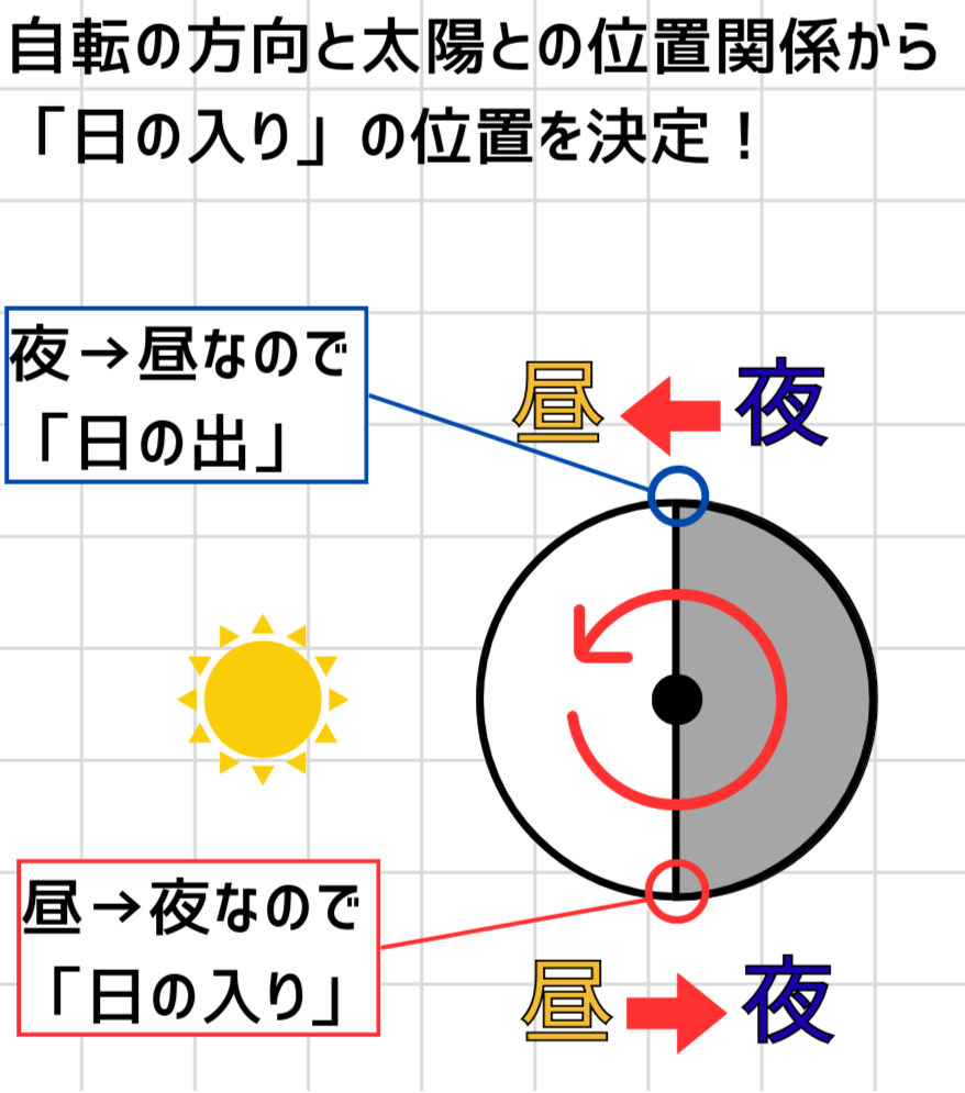 「日の入り」(昼→夜)のポイントを導き出すことが出来ますね!