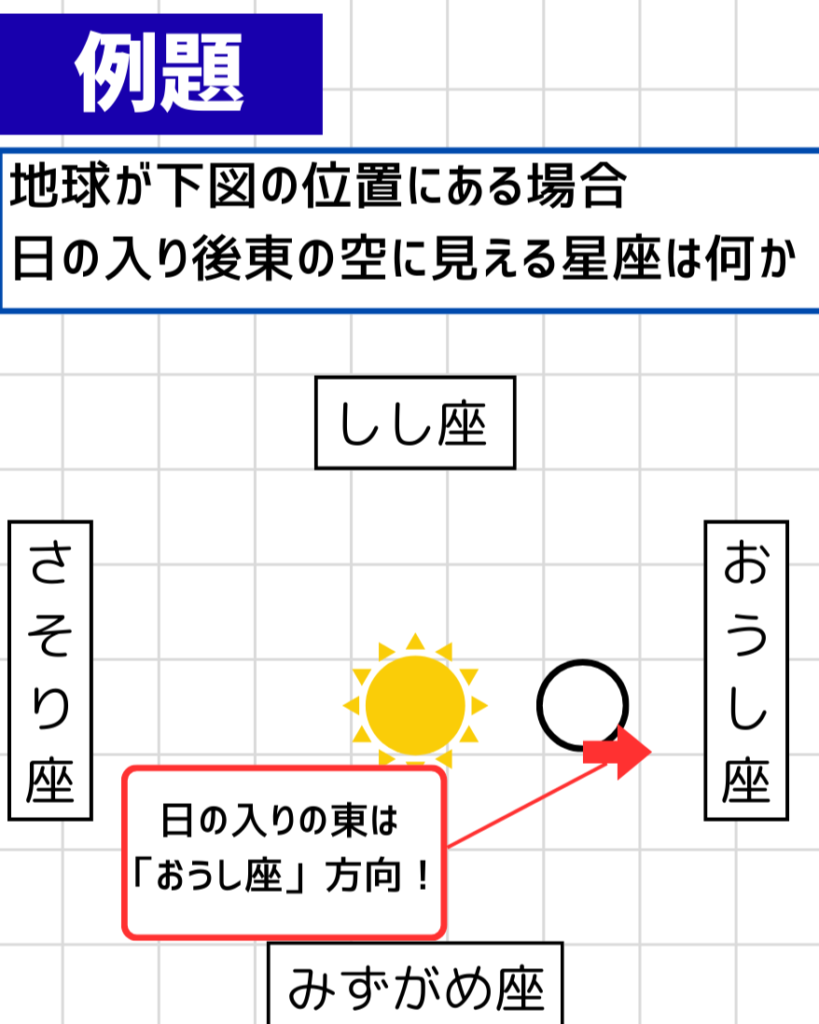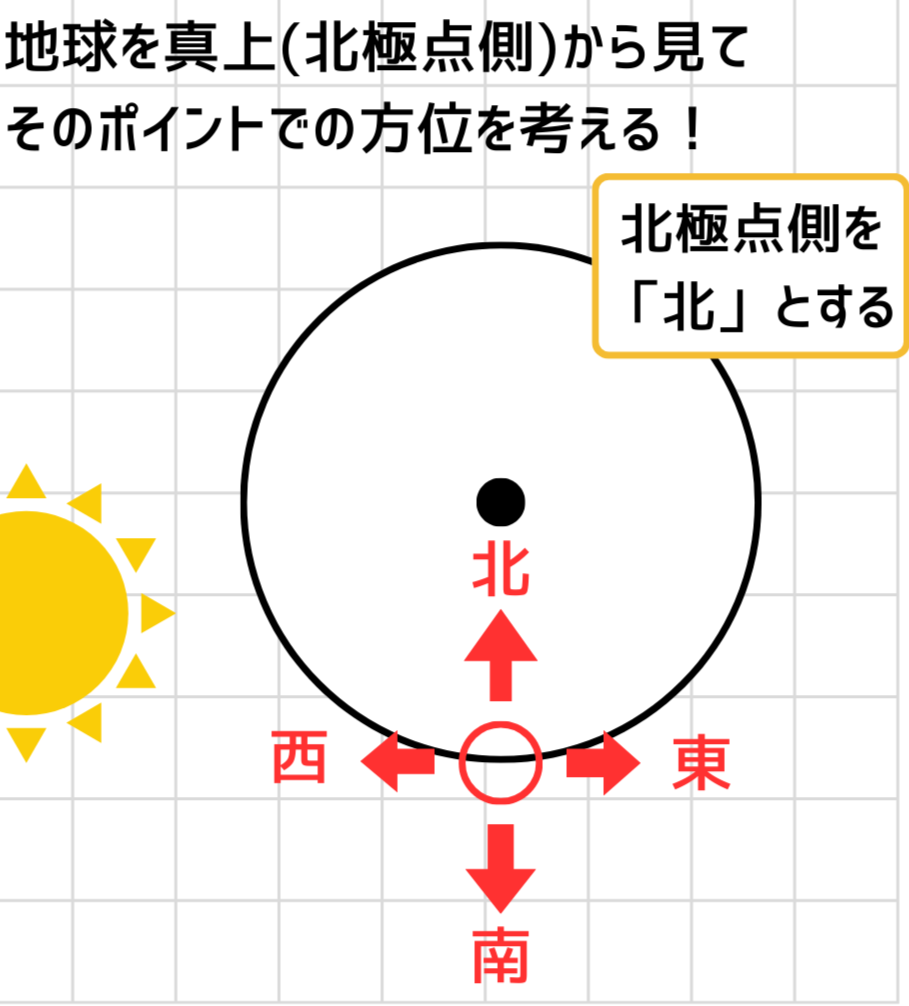 図の位置の地球を真上(北極側)から見下ろしてみると