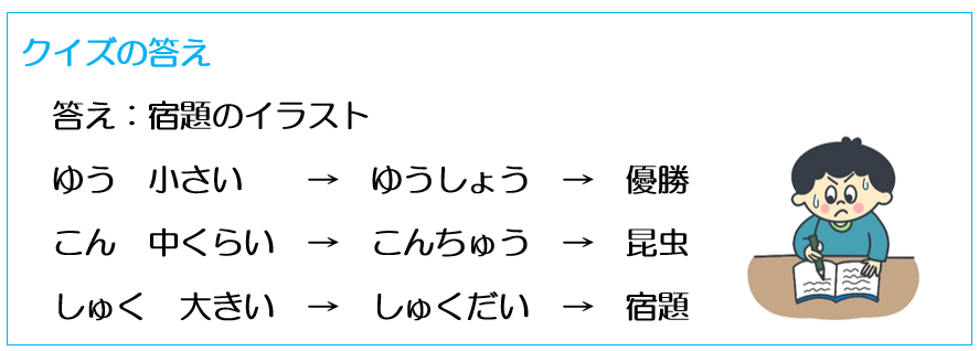 学生の皆さんは、「しゅく」と聞いたら真っ先に「宿題」が頭に浮かぶでしょうから、きっと答えられたと思います!